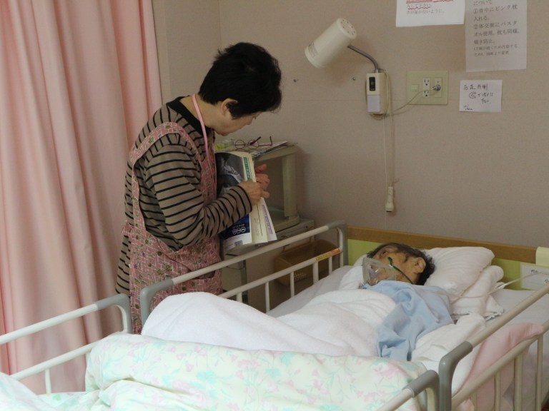 病棟に飾られているお雛様を前にフルートの音色に耳を傾けました。